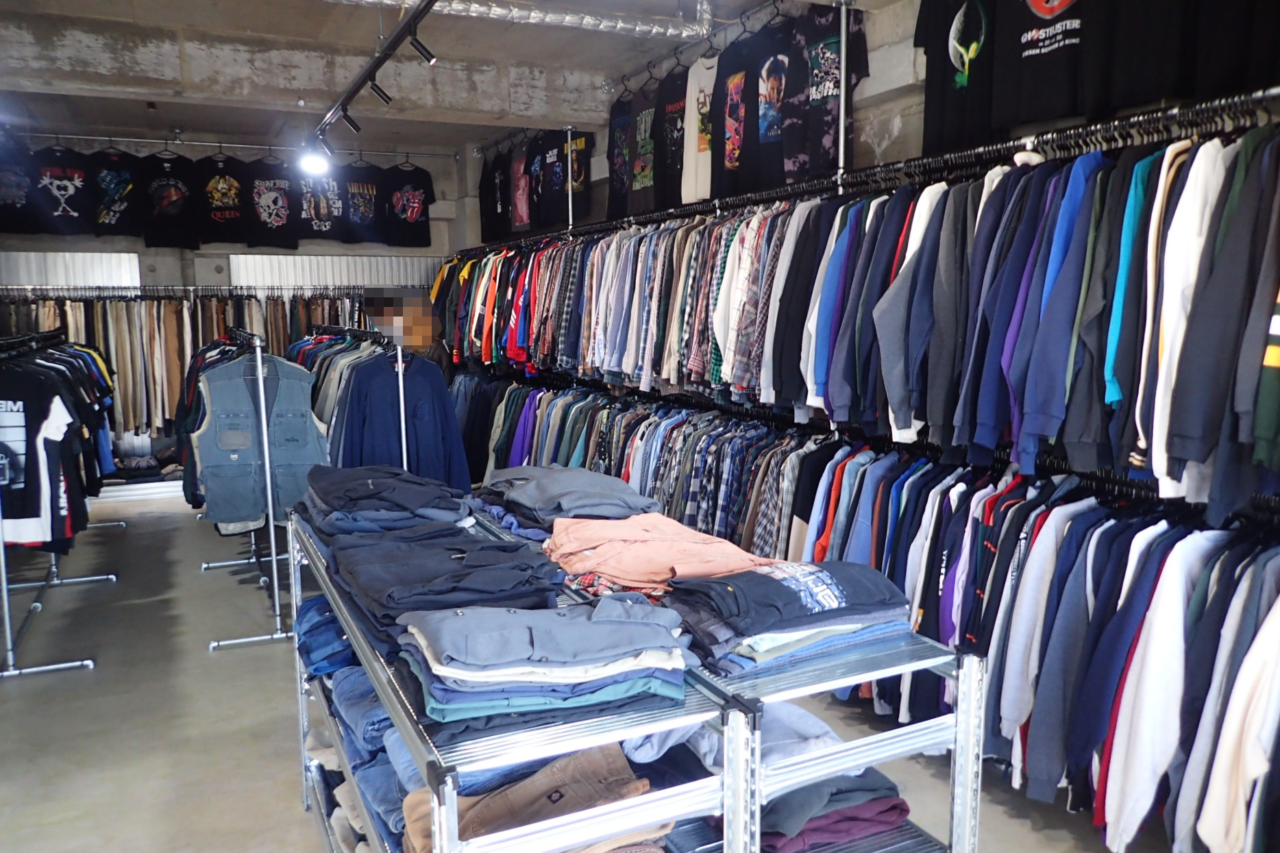 店内に入ると、たくさんの古着が整然と並び、どれも丁寧に手入れされているのが伝わります。「ハイクオリティ/ロープライス」をコンセプトに、GUARANTEE開業から約20年の経験を活かして、一点一点ハンドピックされたアイテムが揃うお店です。