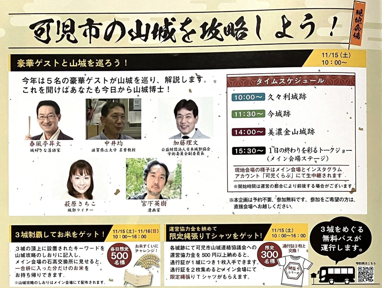 可児市の秋の恒例イベント「山城に行こう! 」が、今年も2025年11月15日(土)・16日(日)の2日間開催されます。時間は10:00〜16:00まで。