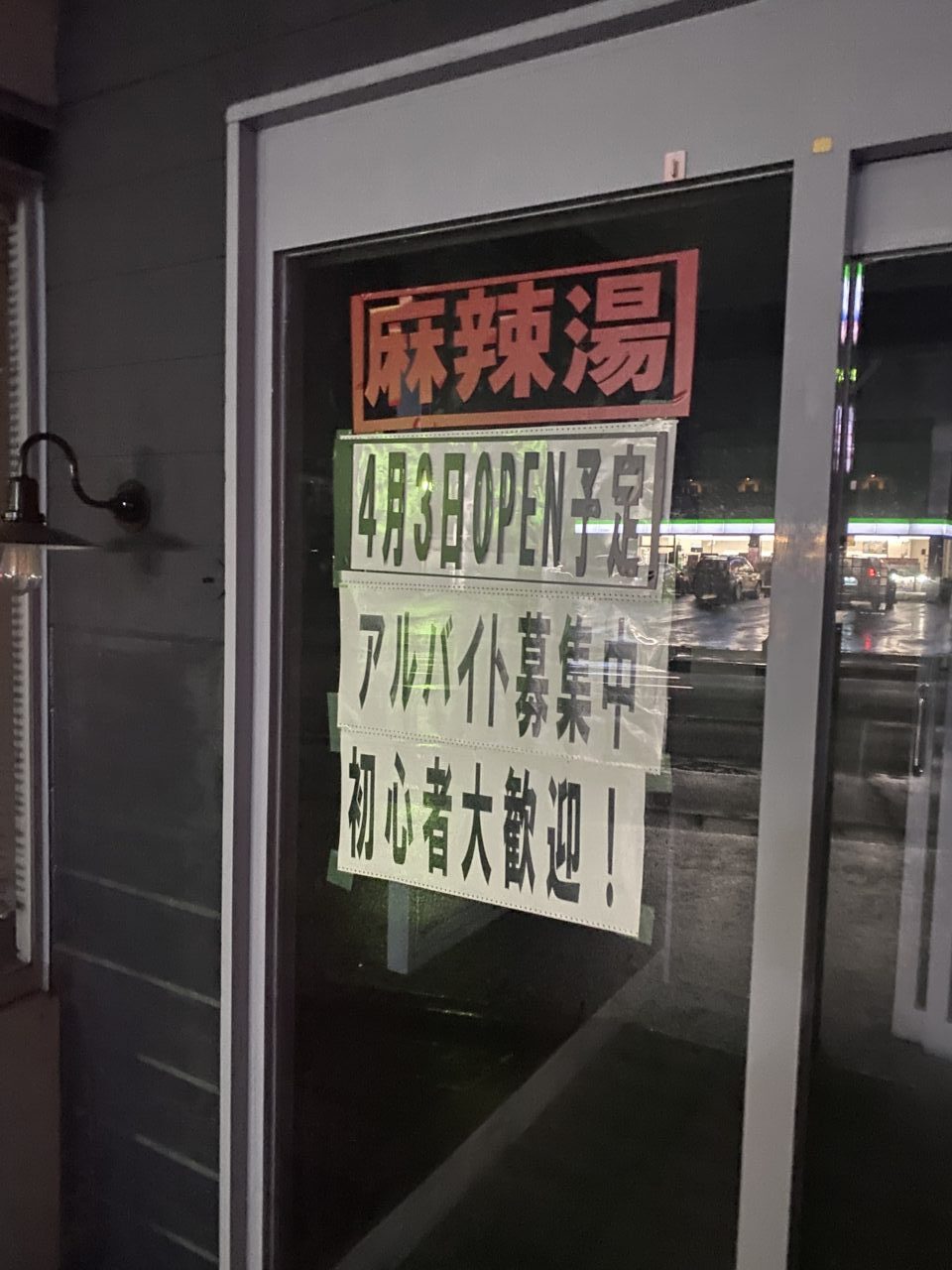 「ニクワウチの跡地に、麻辣湯が(2026年)4月3日にオープンするらしいです。中国の辛い料理のお店かな?」