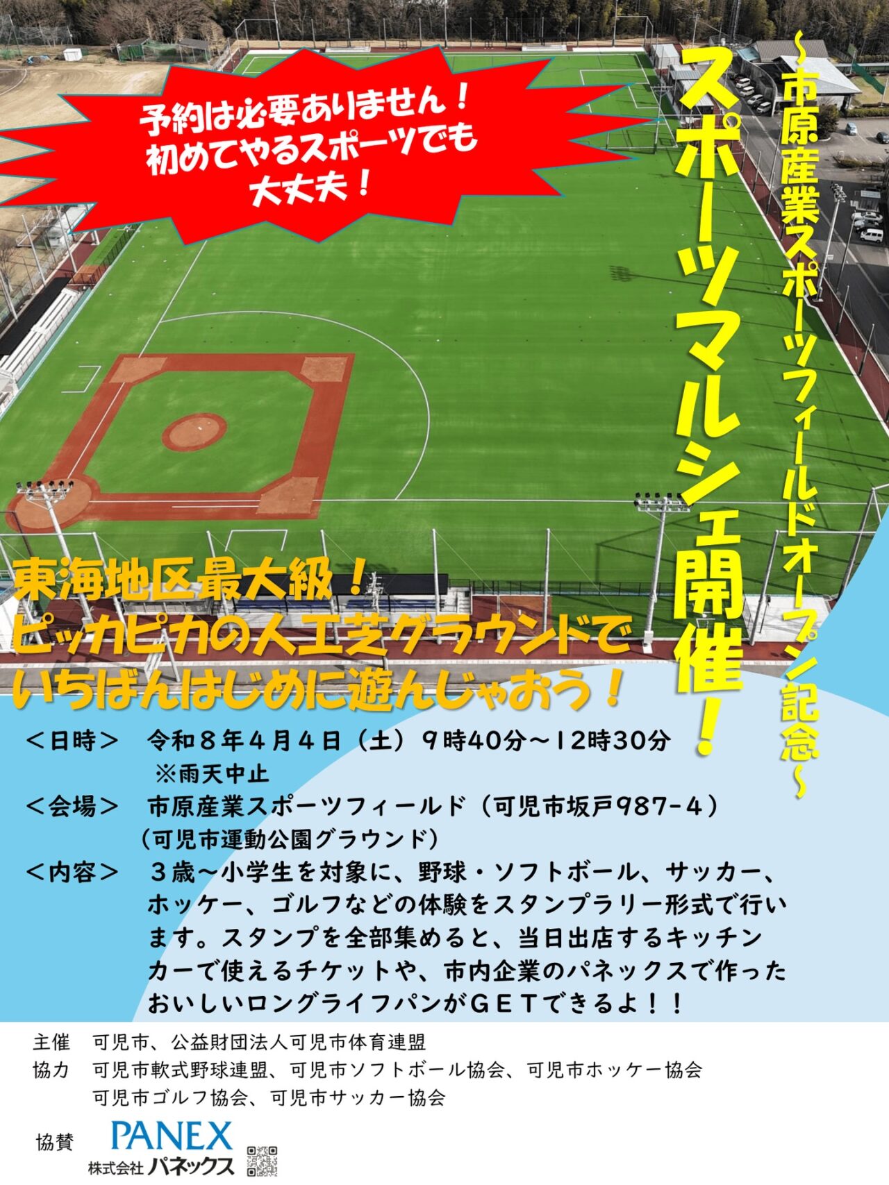 【可児市】運動公園グラウンドがリニューアルオープン! 4月4日「SOMPOボールゲームフェスタ」と「スポーツマルシェ」開催