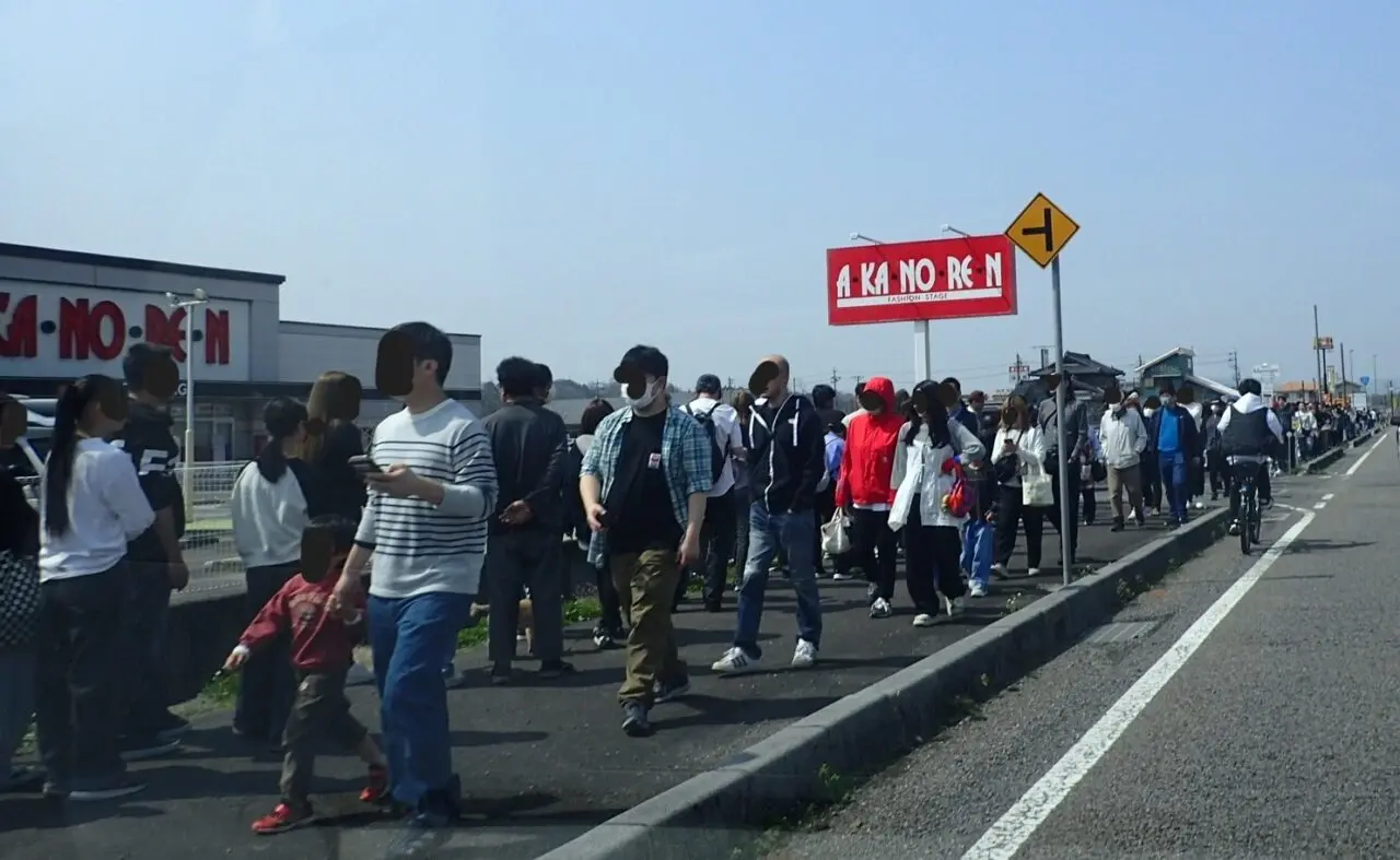 筆者は駐車することさえできませんでした。そのため、同行者に車内で待ってもらい、オープン前の店舗周辺を簡単に撮影して帰宅しました。筆者がお店の入口に到着したときは、ちょうど11時のオープンのカウントダウンが行われている最中でした。カウントダウン後には、店内外から大きな歓声が上がっているのが聞こえてきました。