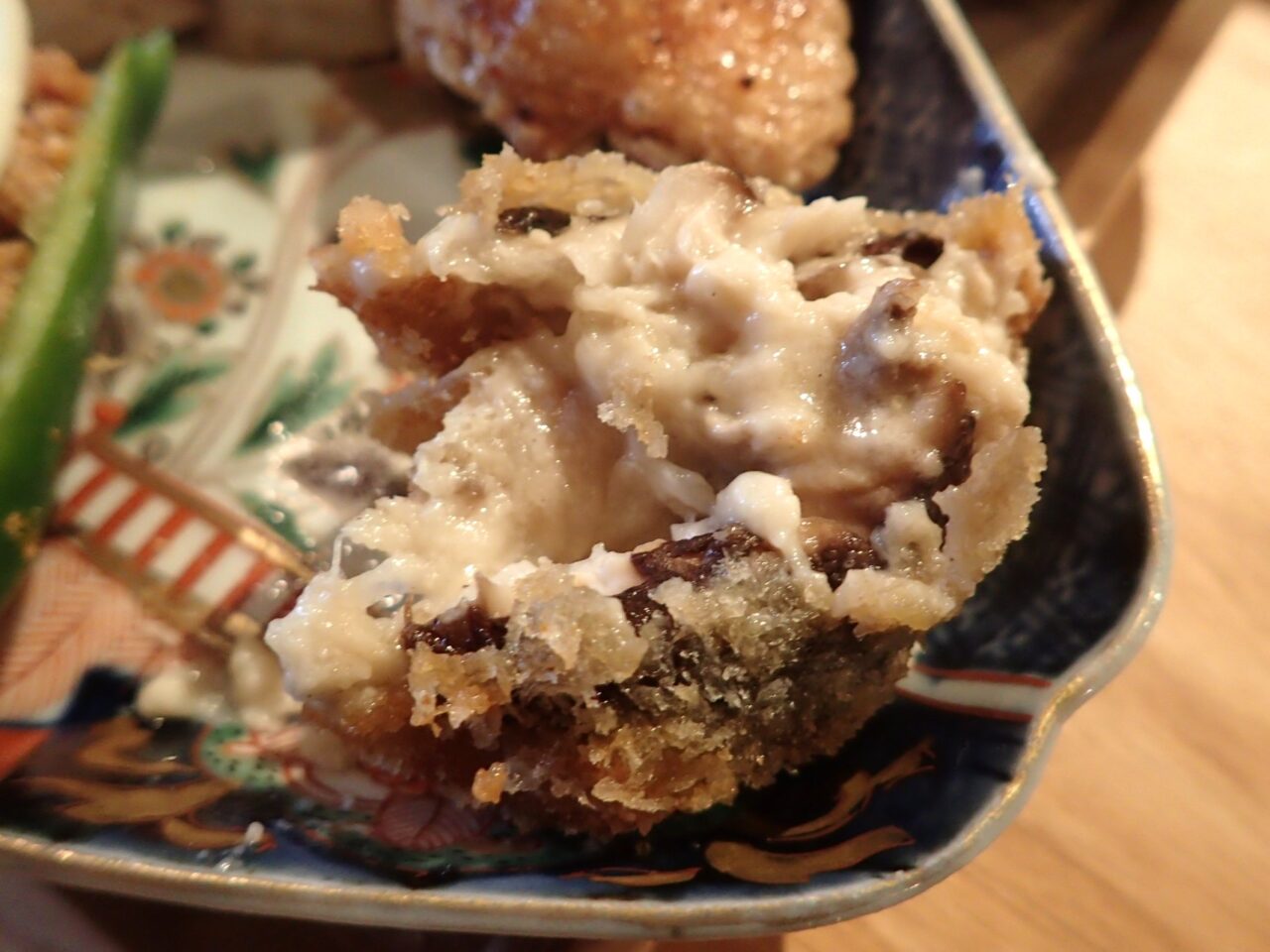 また、美濃加茂の「THANKS FARM」さんの原木しいたけを使ったクリームコロッケも絶品。プリプリのしいたけ、とろけるクリーム、サクッと揚がった衣のバランスが最高です。