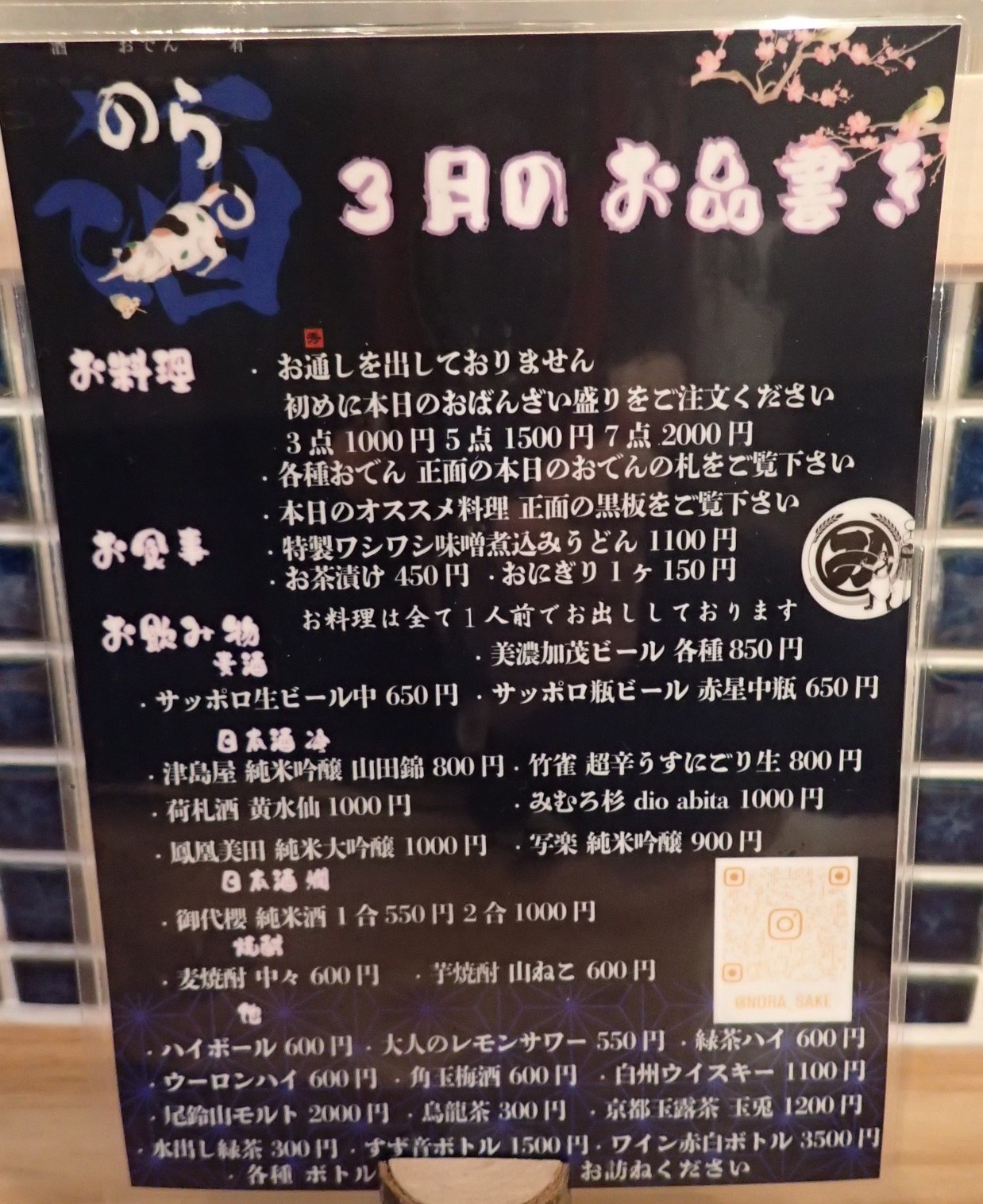 2026年3月19日に、中山道太田宿にオープンした「酒・おでん・肴 のら」さん。