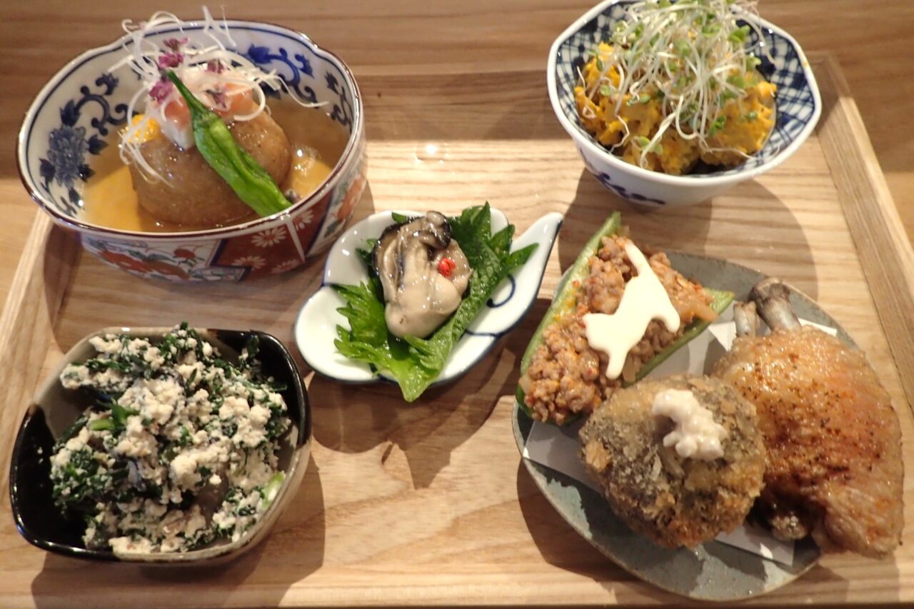 おばんざいは、素材同士の組み合わせで美味しさを引き出しているのが印象的で、濃すぎない絶妙な味付けによって素材の良さが際立っています。